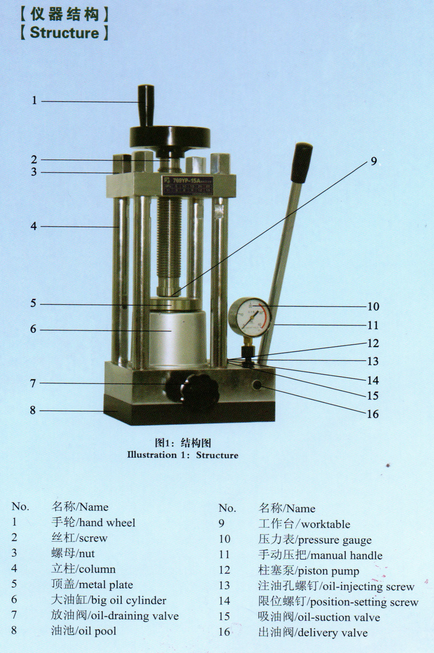 769YP-24B手动粉末压片机油路原理: